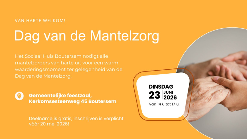 Het Sociaal Huis Boutersem nodigt je van harte uit voor een warm waarderingsmoment naar aanleiding van de Dag van de Mantelzorg.