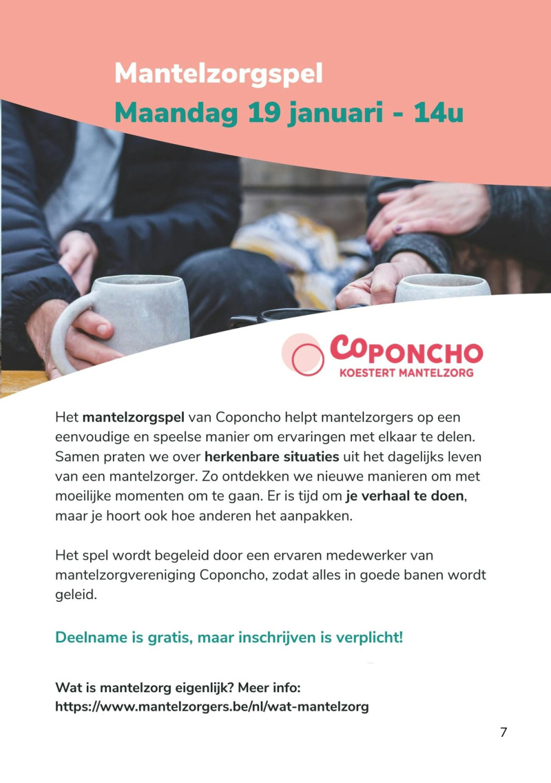 Het mantelzorgspel van Coponcho helpt mantelzorgers op een éénvoudige en speelse manier om ervaringen met elkaar te delen. Samen praten we over herkenbare situaties uit het dagelijks leven van een mantelzorger.