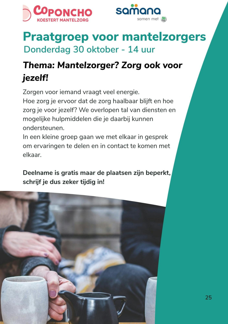 Praatgroep voor mantelzorgers. Thema: Mantelzorger? Zorg ook voor jezelf!