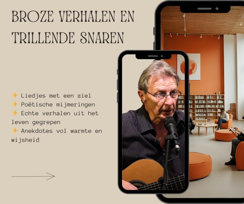Jerom verweeft zijn persoonlijke verhaal moeiteloos met muziek en woord. Zijn optreden raakt, roept herinneringen op, en nodigt uit tot verbondenheid. Of je nu zelf mantelzorger bent, iemand kent met dementie, of gewoon geraakt wordt door oprechte verhalen — deze avond is er één om te koesteren.