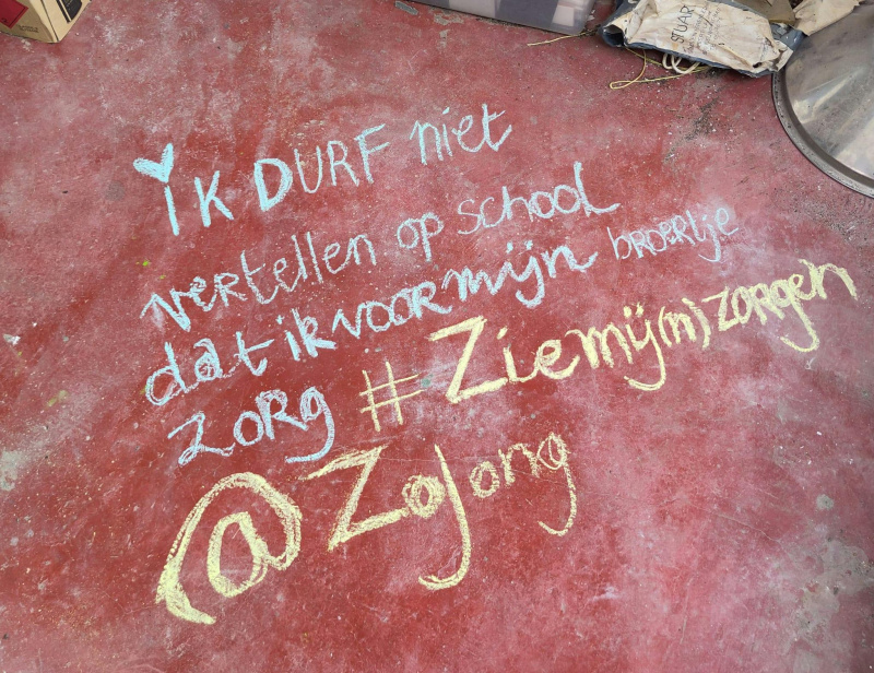 Niets zet jonge mantelzorgers meer in de verf dan hun boodschappen écht zichtbaar maken op straat. Al die oefening als kind met regenbogen kleuren en zonnetjes teken, gaat nu dus goed van pas komen.